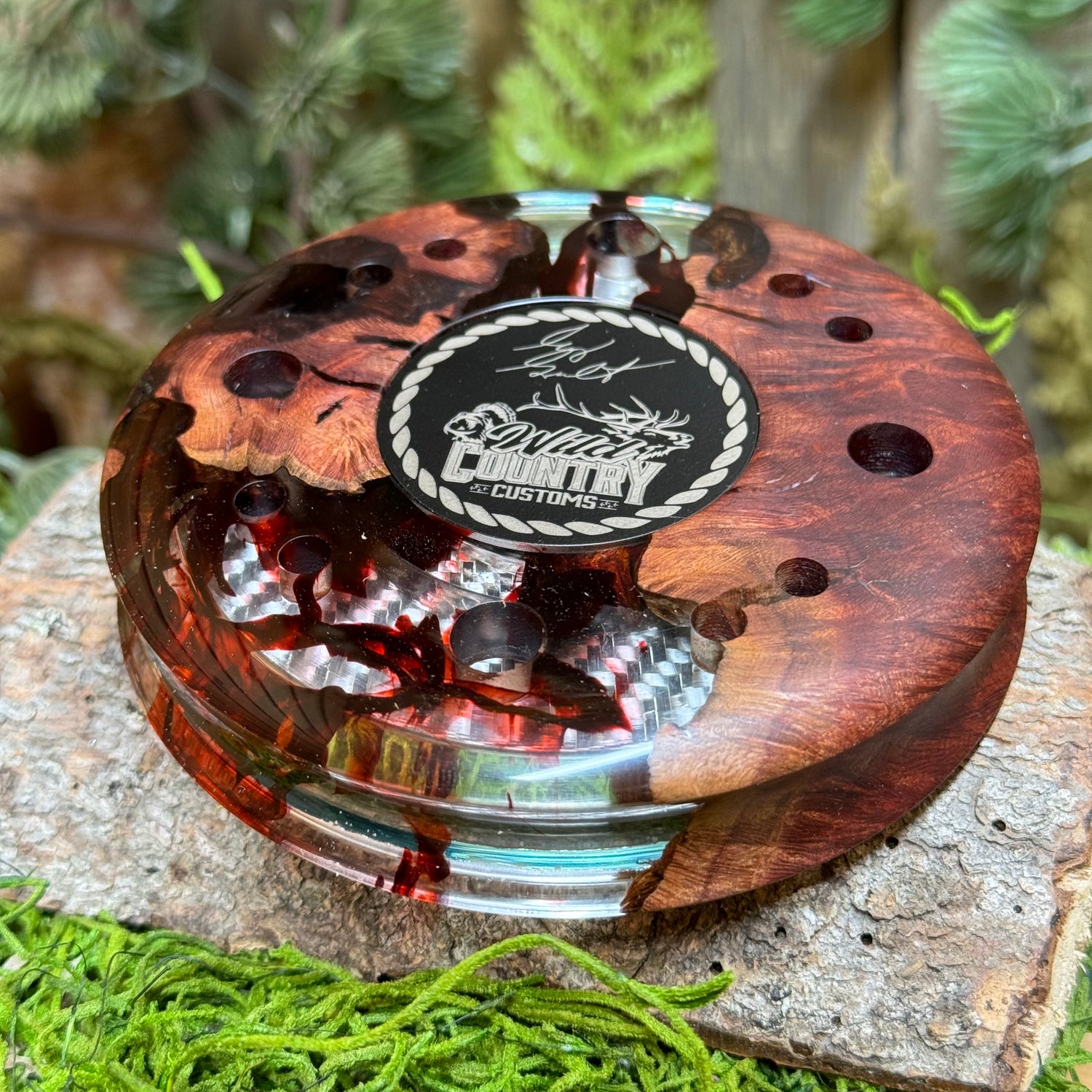 African Queen Jasper Stone Playing Surface in a Yellow Cedar Burl Pot Call