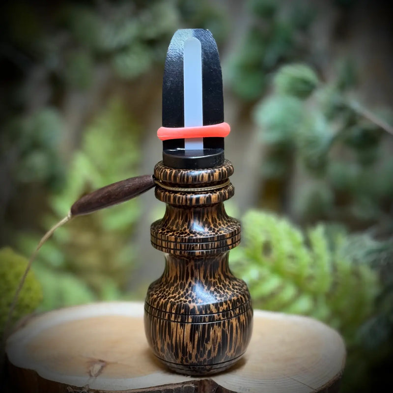 Black palm is a unique wood stabilized for weather proofing and durability. This is an excellent sounding call.