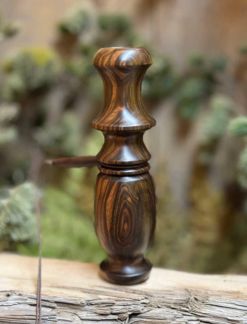 This is a single reed call that can be operated either by blowing normally through the barrel to produce a wide array of doe sounds, or by inhaling through the other end to produce the estrous bleat. This call is capable of producing the entire vocal range of a white tail doe along with deeper grunts made by young/immature bucks. This is a compact and highly versatile call!