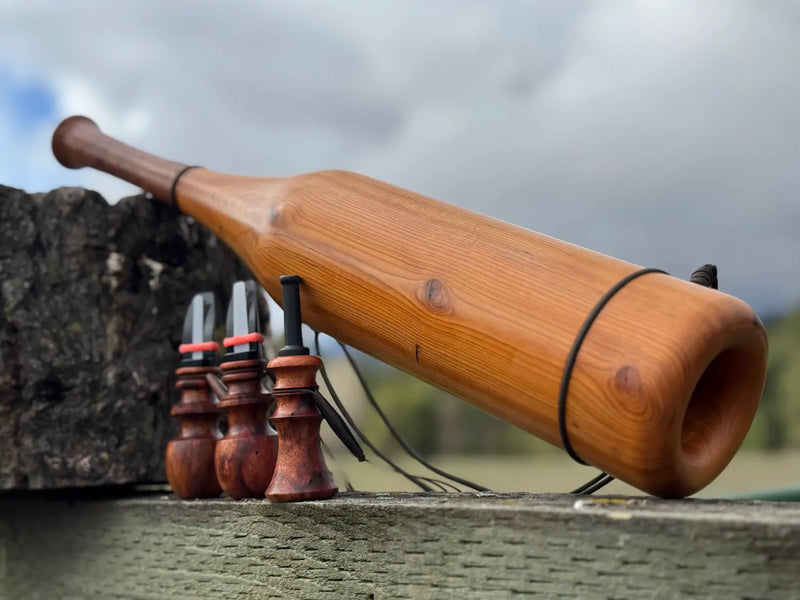 Custom Pacific Yew Elk Bugles offer the ultimate in realistic bull sounds, taking your calling to the next level. The durable hardwood is weatherproof, standing up to many years of use, and unlike our competition, they do not require extensive amounts of care to maintain. The tube is finished with a UV cured oil/wax/resin and then topped with a two layer ceramic coating. Each one is individually hand turned and hand finished, nothing is done on a CNC.